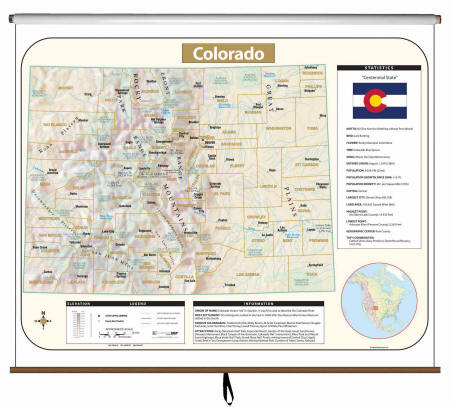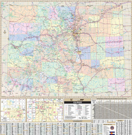 Colorado Indexed State Wall Map with a laminated, markable, and washable surface. Indexed on the map’s face. Provides color-coded