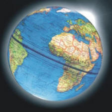 (illuminated - image below) and political cartography (non-illuminated - left image) on the globe.